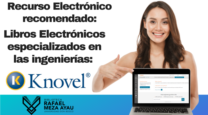 Knovel es una plataforma de libros electrónicos que integra información técnica con herramientas de búsqueda analítica. Tiene una gran colección de libros electrónicos de texto completo , incluye manuales de referencia, actas de congresos y bases de datos y más.