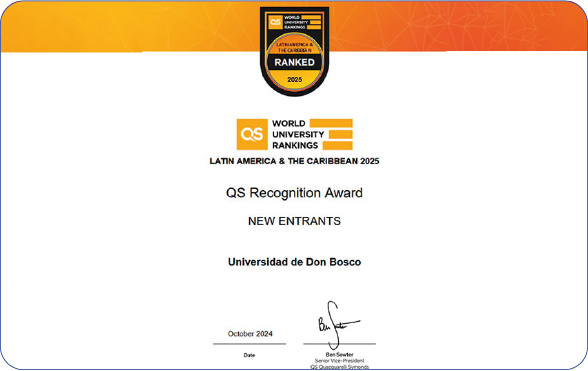 Universidad Don Bosco reconocida mundialmente por su calidad académica y excelencia institucional