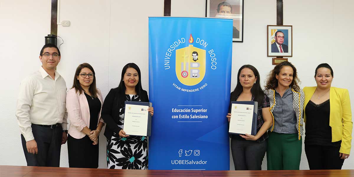 La firma del convenio se concretó en las instalaciones del campus universitario ubicado en Soyapango, ante la presencia de la secretaria general Xiomara Martínez; Karina Salguero, directora de proyección social UDB y Francisco Mira, colaborador técnico del programa de becas de la Universidad.