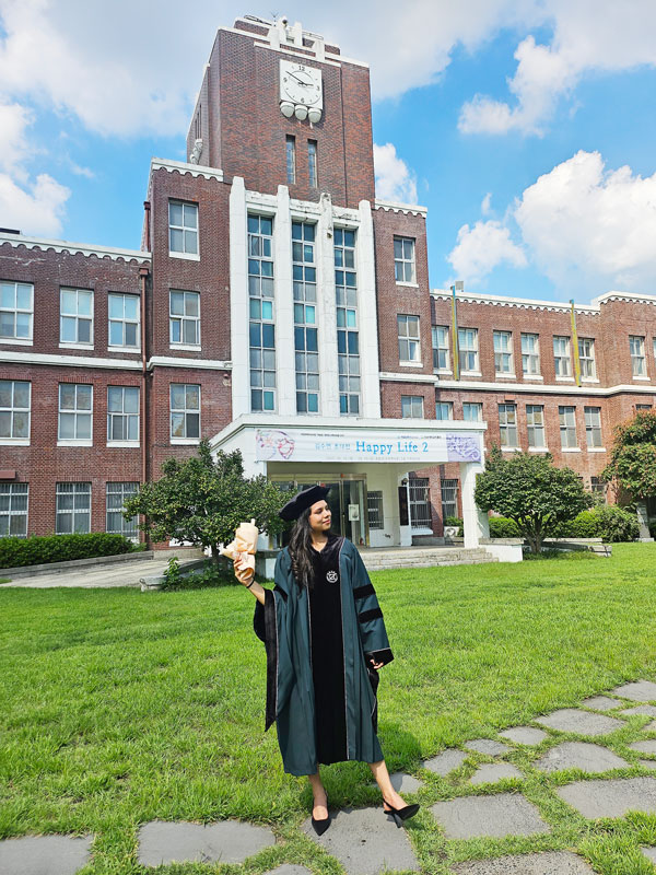 Y ahora, me gradué del Máster en Administración de Empresas en la Universidad Nacional de Chonnam, en Corea del Sur. Mi siguiente meta es integrarme al mercado laboral, seguir creciendo profesionalmente y contribuir con lo aprendido en beneficio de la sociedad”.