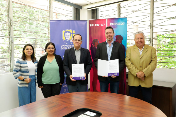 La Universidad Don Bosco y la plataforma digital Co-Laborativa firmaron un convenio de colaboración que tiene como finalidad favorecer la inserción laboral de los estudiantes en el sector empresarial del país.