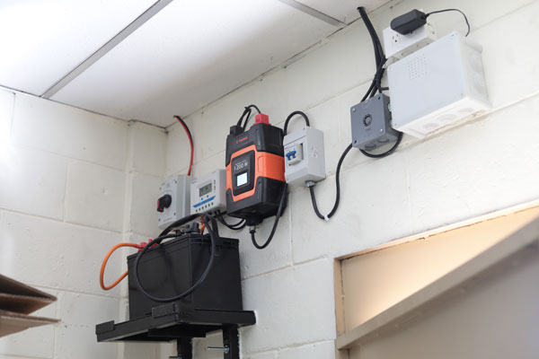 Sistema de almacenamiento y de conversión del sistema fotovoltaico (colocado en el salón de clases del Complejo Educativo).