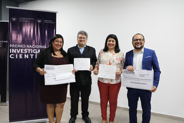 En conmemoración del Día Nacional del Investigador Salvadoreño y Día Nacional de la Ciencia y Tecnología, el CONACYT entregó también un reconocimiento por su perfil profesional y aporte a la innovación científica a cuatro docentes investigadores de la UDB, en las siguientes categorías: