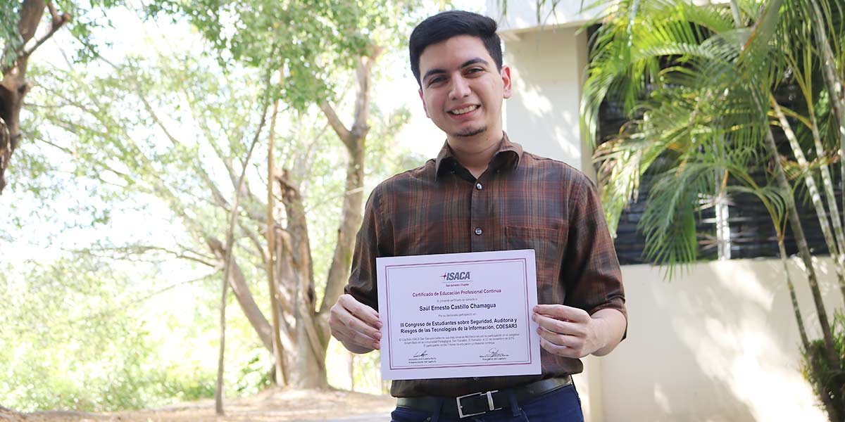 Siendo becario UDB, Saúl ha tenido la oportunidad de participar en varias actividades que han contribuido con su desarrollo académico, entre ellas destaca su participación en el III Congreso de estudiantes sobre ciberseguridad, auditoría y riesgos de las tecnologías de la información COESAR, impulsado por el capítulo ISACA de El Salvador, organismo internacional que promueve la educación de las personas en temas relacionados a la auditoría de sistemas de información, TI, ciberseguridad, entre otros.