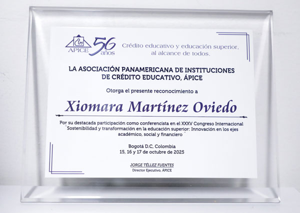 La secretaria general de la UDB, Xiomara Martínez, participó como panelista internacional en el XXXV Congreso Internacional de Crédito Educativo, desarrollado en Colombia bajo el lema “Sostenibilidad y transformación en la educación superior: innovación en los ejes académico, social y financiero”.