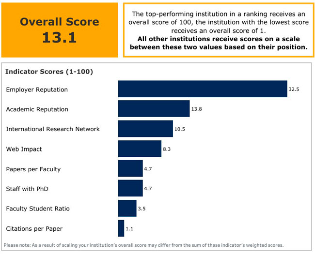 El informe del QS resalta la mejora en las dimensiones: Impacto Web, este indicador evalúa la eficacia con la que instituciones utilizan las nuevas tecnologías; Relación profesor/estudiante, este refleja el compromiso de la institución con su misión de enseñanza y aprendizaje, se basa en la relación entre el número del personal académico y estudiantil; y como un valor diferenciador, en esta edición del ranking la UDB incluyó con buen puntaje la dimensión: Citas de artículos, índice que mide el número promedio de citas obtenidas por publicación, mide el impacto y la calidad del trabajo científico realizado por las universidades. Toma de referencia una de las bases de datos científicas más importantes como Scopus.