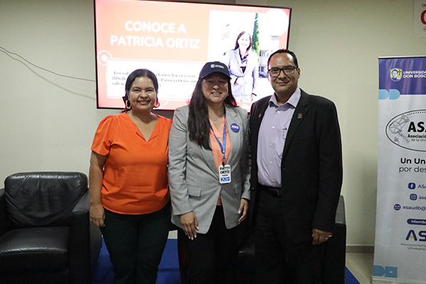 Patty Ortíz junto a integrantes de ASAUDB y colaboradores de la Universidad Don Bosco.