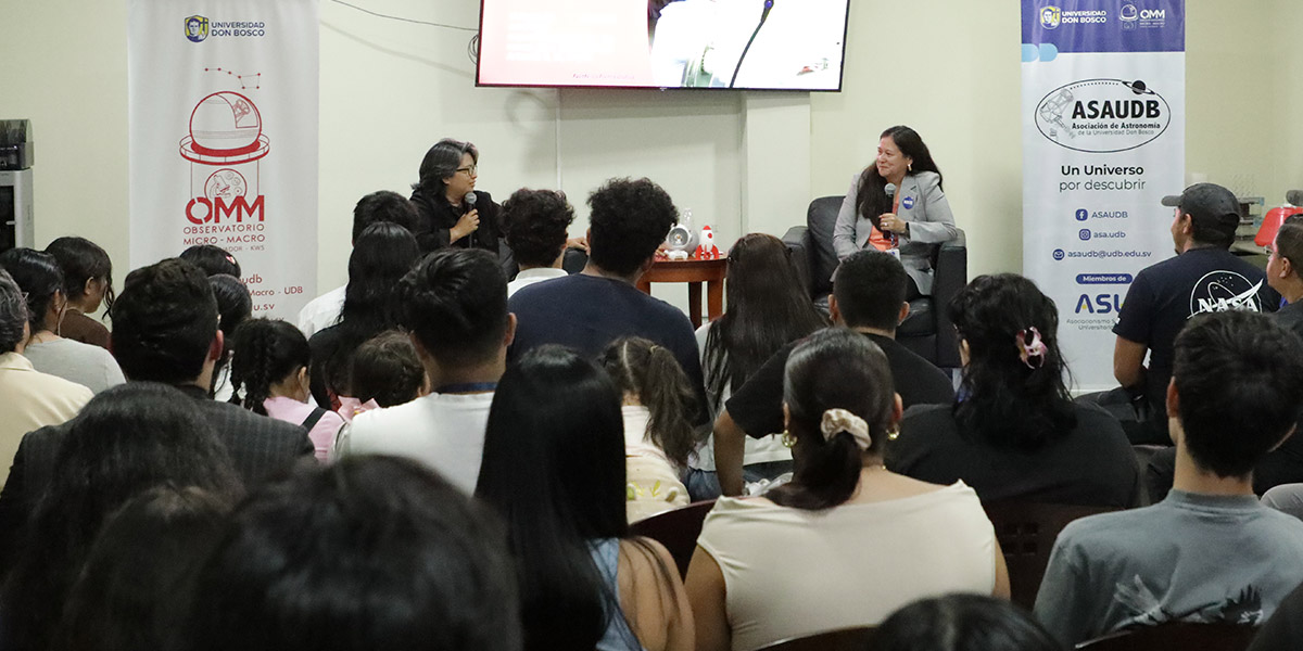 El Observatorio Micro Macro (OMM) de la Universidad Don Bosco albergó el conversatorio con la ingeniera aeroespacial salvadoreña de la NASA (National Aeronautics and Space Administration), Patty Ortíz. El espacio se consolidó como uno lleno de inspiración y aprendizaje para los asistentes quienes conocieron de primera mano la trayectoria de la profesional: los retos y desafíos a los que se ha enfrentado, así como sus motivaciones y proyectos a futuro.