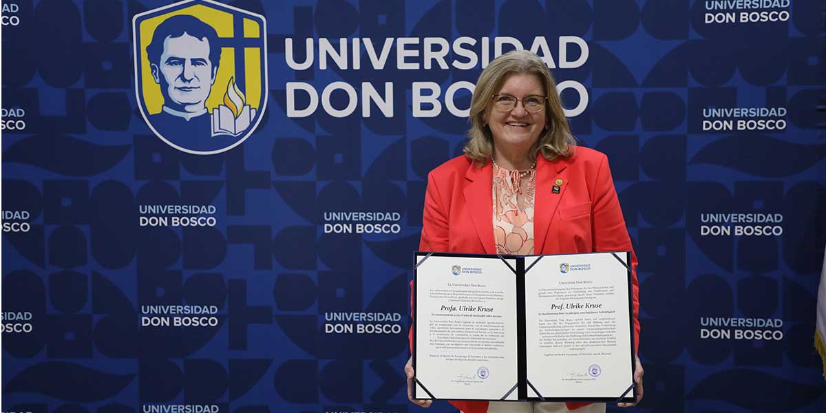 En días recientes la Universidad Don Bosco entregó un importante reconocimiento a la profesora Ulrike Kruse por haber alcanzado 15 años de invaluable labor docente en esta casa de estudios.