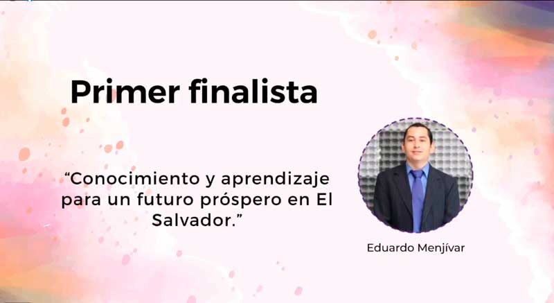 En este concurso fue reconocido como primer finalista con su ensayo titulado “Conocimiento y aprendizaje para un futuro próspero en El Salvador”.