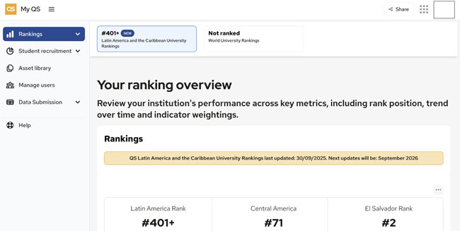 Fuente: 2026 QS World University Rankings: Latin America & The Caribbean Fact File/Universidad Don Bosco.